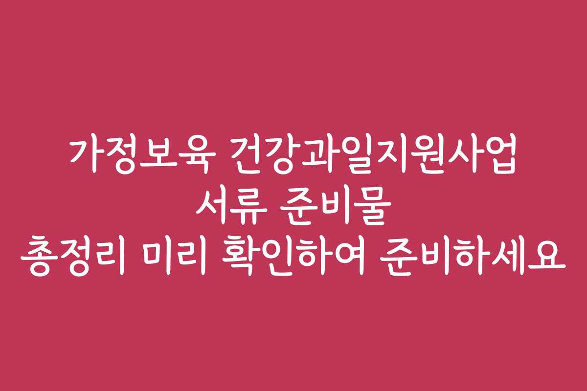 여러분, 가정보육 건강과일지원사업은 부모님들에게 큰 도움이 되는 제도입니다. 하지만 이 지원을 받기 위해서는 꼭 알아야 할 서류들이 있습니다. 미리 준비할 수 있도록 필요한 서류들을 꼼꼼히 정리해 보겠습니다. 지금부터 가정보육 건강과일지원사업 서류 준비물에 대해 알아보세요!