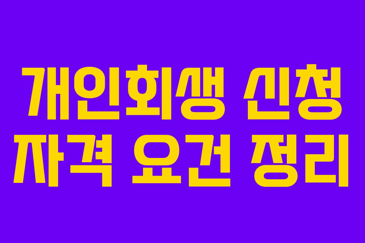 경제적인 어려움으로 인해 개인회생을 고려하는 분들이 많습니다. 이 제도는 재정적으로 힘든 개인이 채무를 조정하여 새로운 시작을 할 수 있도록 돕는 법적 절차입니다. 이번 글에서는 개인회생 신청을 위한 자격 요건에 대해 자세히 알아보겠습니다.