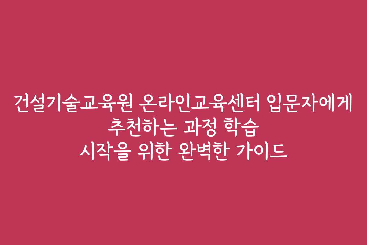 건설기술교육원 온라인교육센터 입문자에게 추천하는 과정 학습 시작을 위한 완벽한 가이드