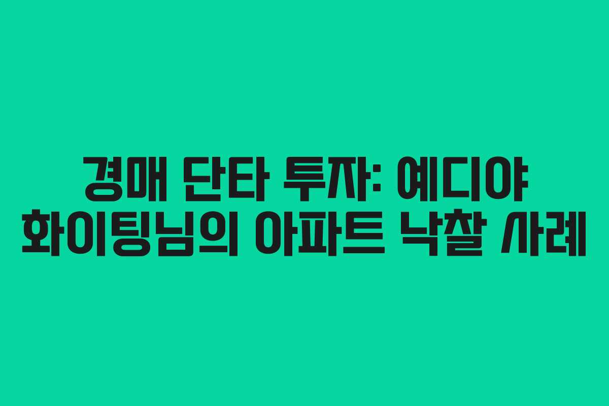 최근 부동산 경매 시장에서 단타 투자에 대한 관심이 높아지고 있습니다. 이번 글에서는 예디야 화이팅님이 지난 12월부터 시작한 경매 낙찰 사례를 중심으로 경매 단타 투자에 대해 살펴보겠습니다.