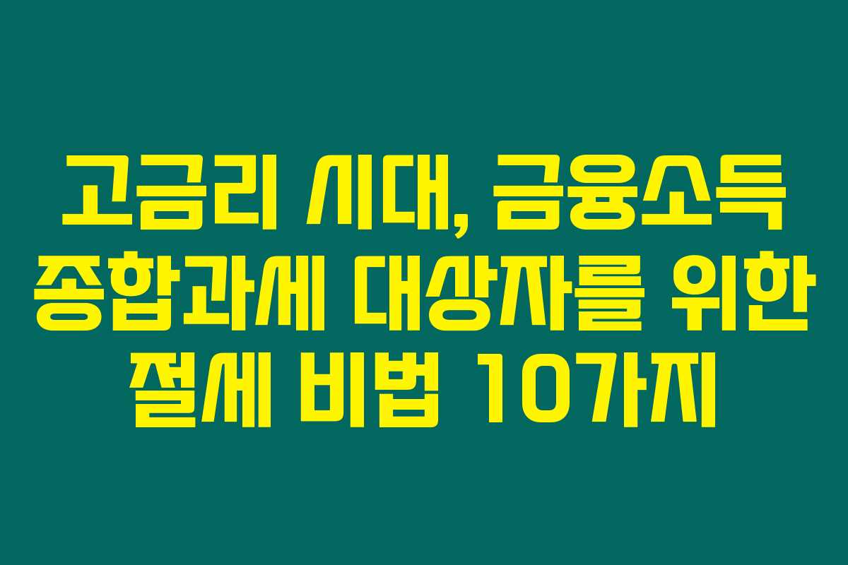 고금리 시대, 금융소득 종합과세 대상자를 위한 절세 비법 10가지