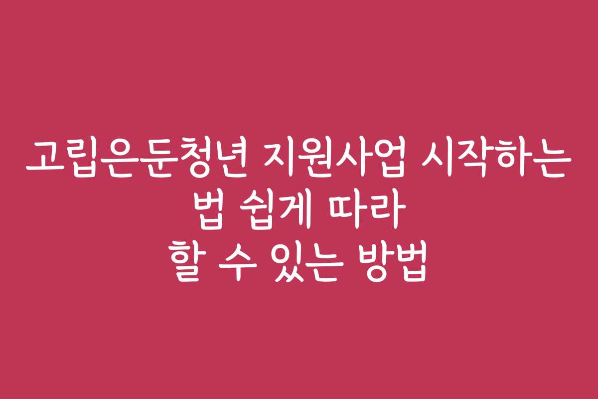 핵심 키워드: 고립은둔청년, 지원사업, 방법, 팁, 후기, 비교, 추천, 비용, 절차, 사회참여, 정신건강