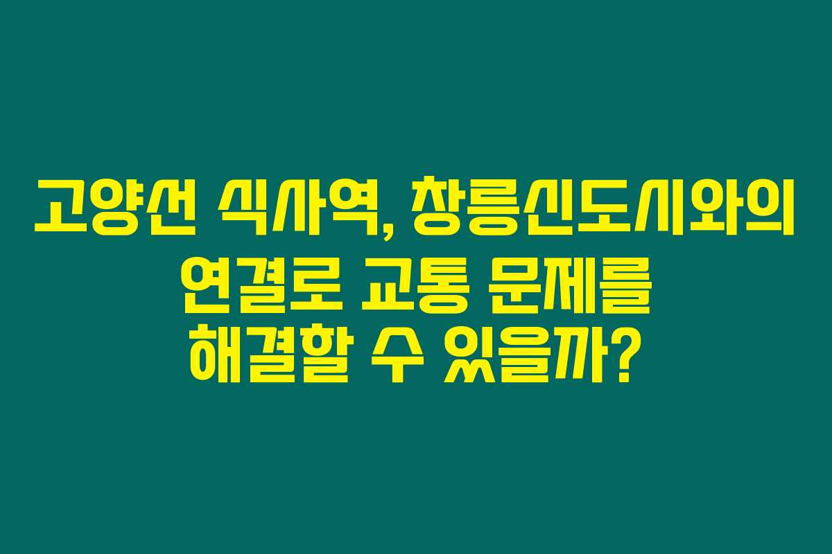 제가 경험해본 결과로는, 창릉신도시는 고양시에 위치해 있으면서도, 서울과의 접근성이 부족하여 지역 주민들에게 불만이 많아요. 고양선이 식사역을 포함하여 연장된다면, 창릉신도시 주민들의 교통 편의를 크게 개선할 수 있을 것 같은데요.