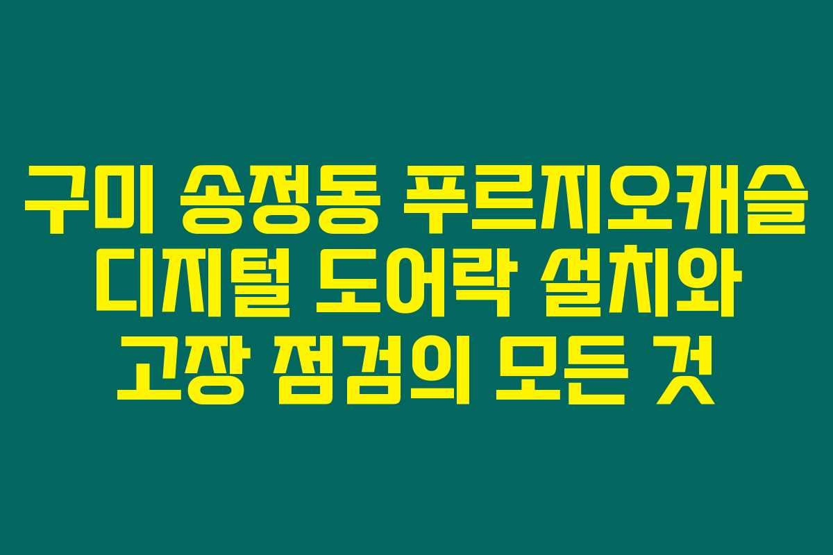 구미 송정동 푸르지오캐슬 디지털 도어락 설치와 고장 점검의 모든 것