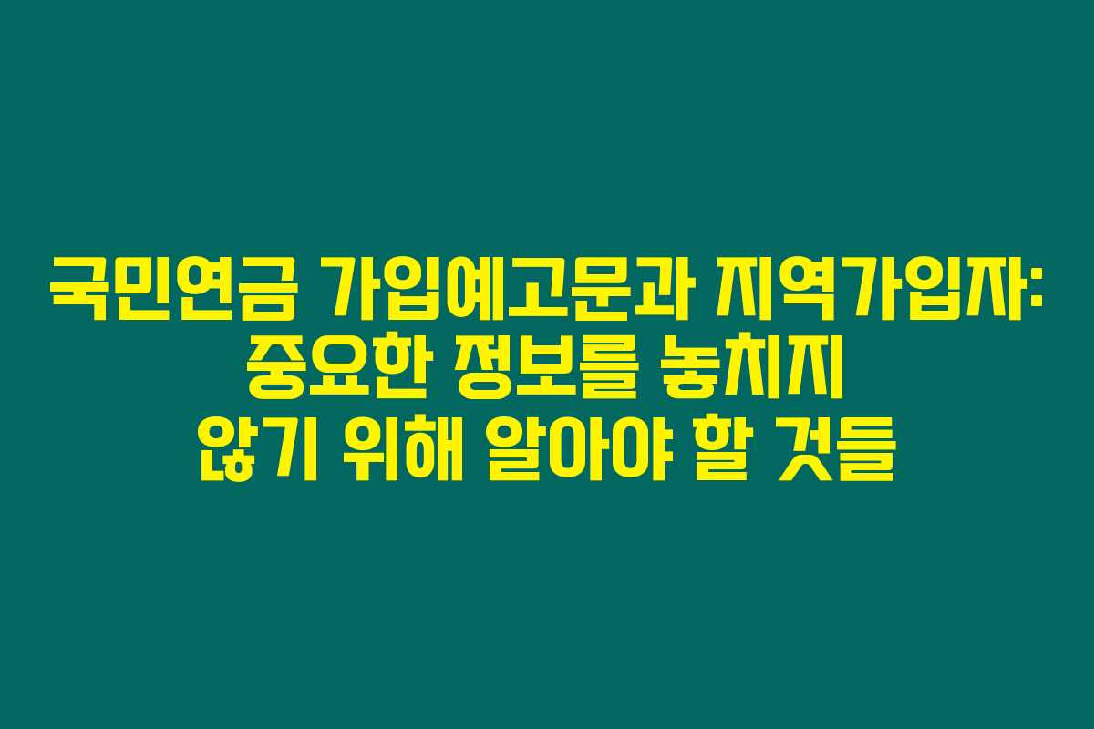 제가 직접 경험해본 결과로는, 많은 분들이 국민연금 가입예고문을 받고 난 후 어떤 절차를 거쳐야 하는지에 대한 고민이 많더라고요. 국민연금은 우리의 노후를 준비하기 위한 중요한 제도이기 때문에, 가입예고문을 소홀히 하면 안 됩니다. 아래를 읽어보시면 국민연금 가입예고문과 지역가입자 신청, 납부예외 신청의 중요성에 대해 자세히 알아보실 수 있습니다.