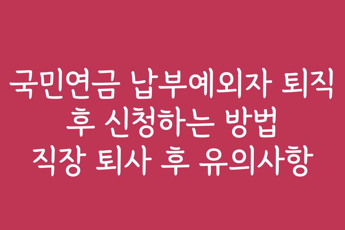 퇴직 후의 경제적 불안이 걱정이신가요? 국민연금 납부예외자라면 더욱 주의가 필요합니다. 이 글에서는 국민연금 납부예외자 퇴직 후 신청 방법과 함께 퇴사 후 유의사항을 설명합니다.