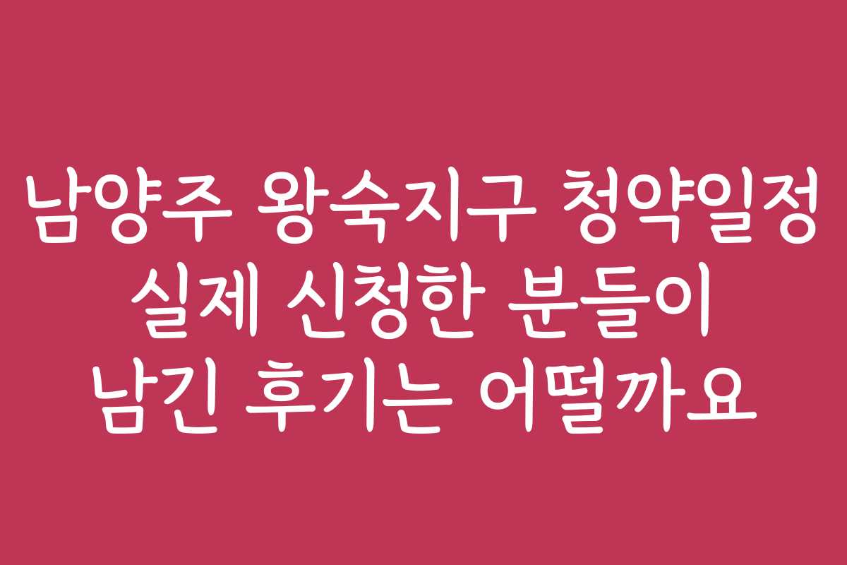 남양주 왕숙지구 청약일정에 대한 실제 신청자들의 후기는 어떨까요?