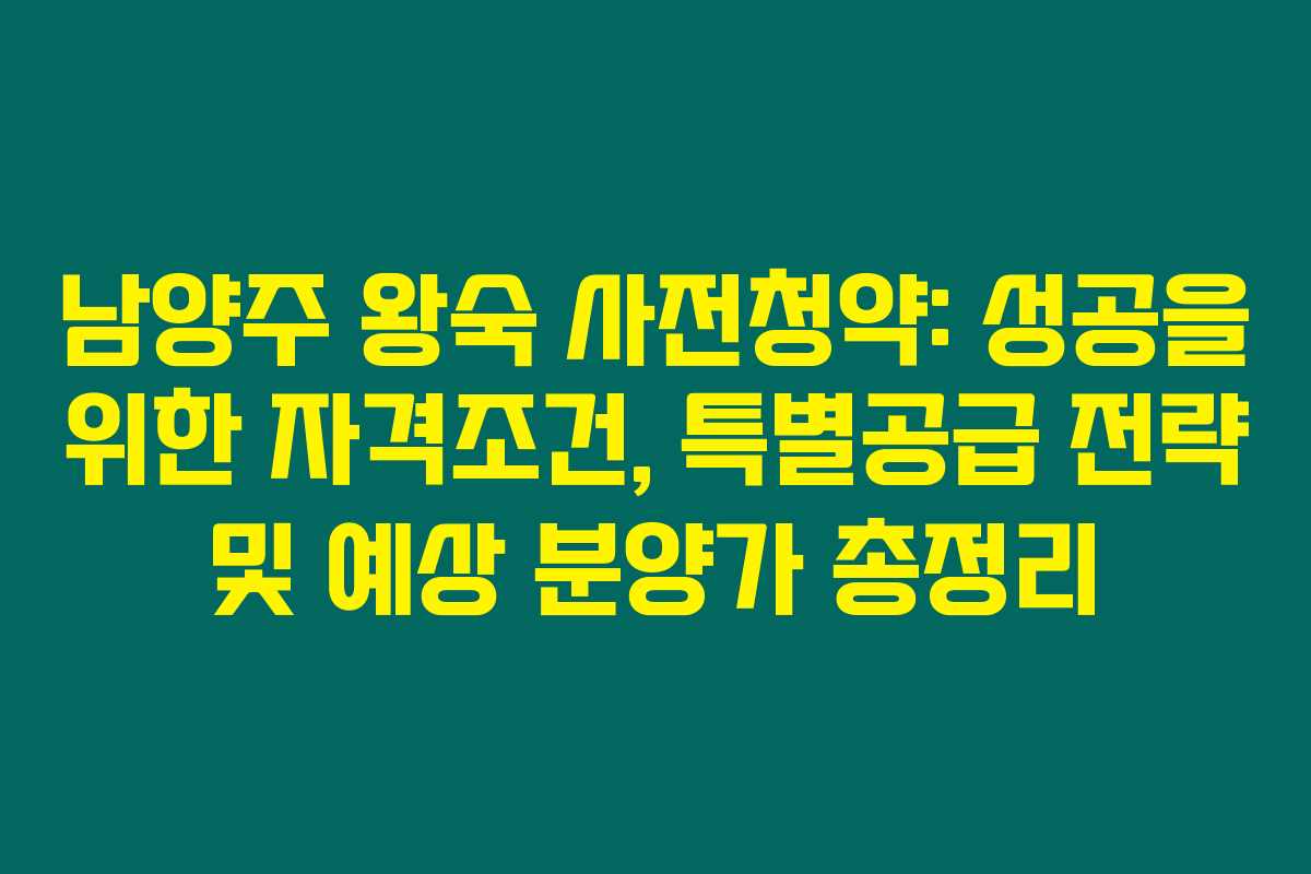 1. 남양주 왕숙 청약의 특별공급 혜택은?