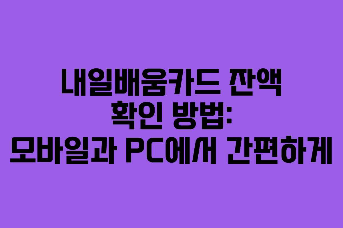 내일배움카드는 직업 훈련을 지원하는 중요한 카드로, 잔액을 확인하는 것은 교육 신청 시 필수적입니다. 이번 글에서는 내일배움카드 잔액을 확인하는 방법을 모바일과 PC에서 각각 안내드립니다.