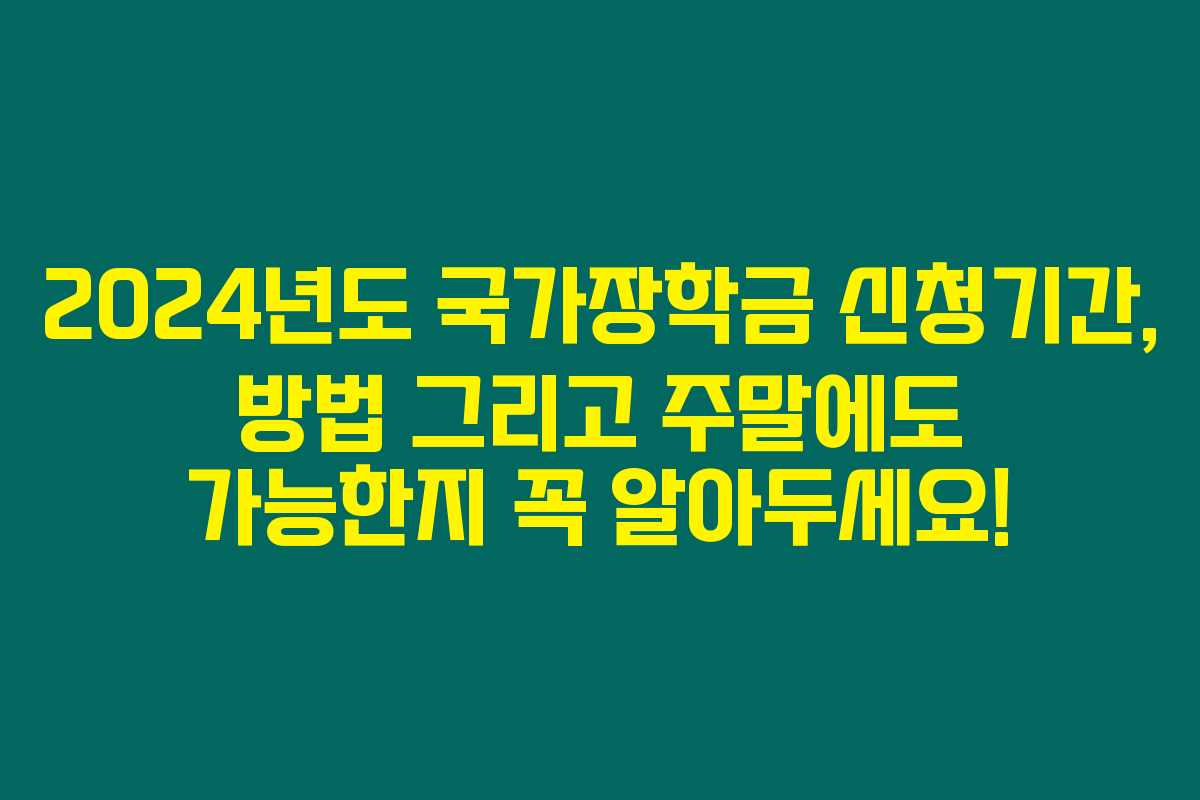 오늘은 2024년도 국가장학금 신청에 대해 자세히 알아보았어요. 신청 기간과 방법, 주말에도 신청할 수 있는지 등을 확인하였으니, 필요한 친구들에게도 알려주세요. 여러분의 학업을 응원합니다!