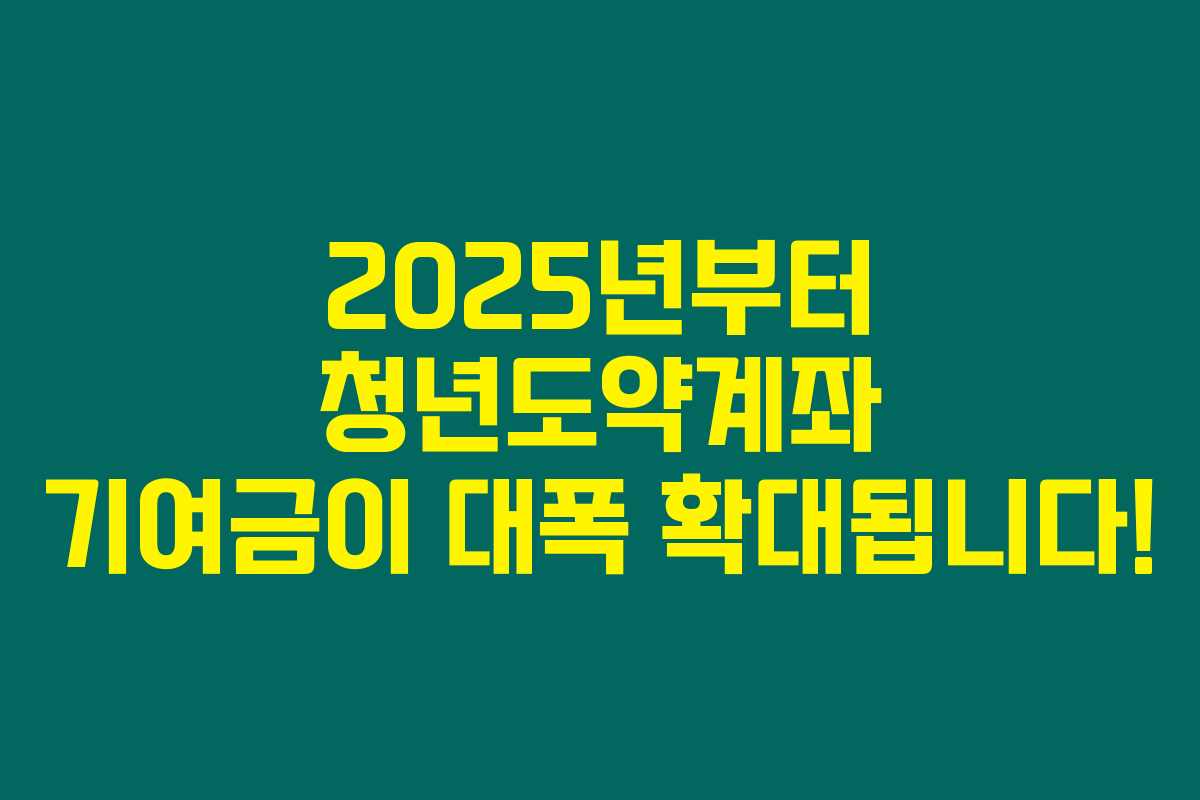 2025년 1월부터 청년 여러분이 기다리고 기대했던 청년도약계좌 기여금이 확대됩니다. 청년 자산 형성을 위한 정책이 개선되니, 아래를 읽어보시면 더 많은 혜택을 누릴 수 있는 방법을 알게 될 거예요.