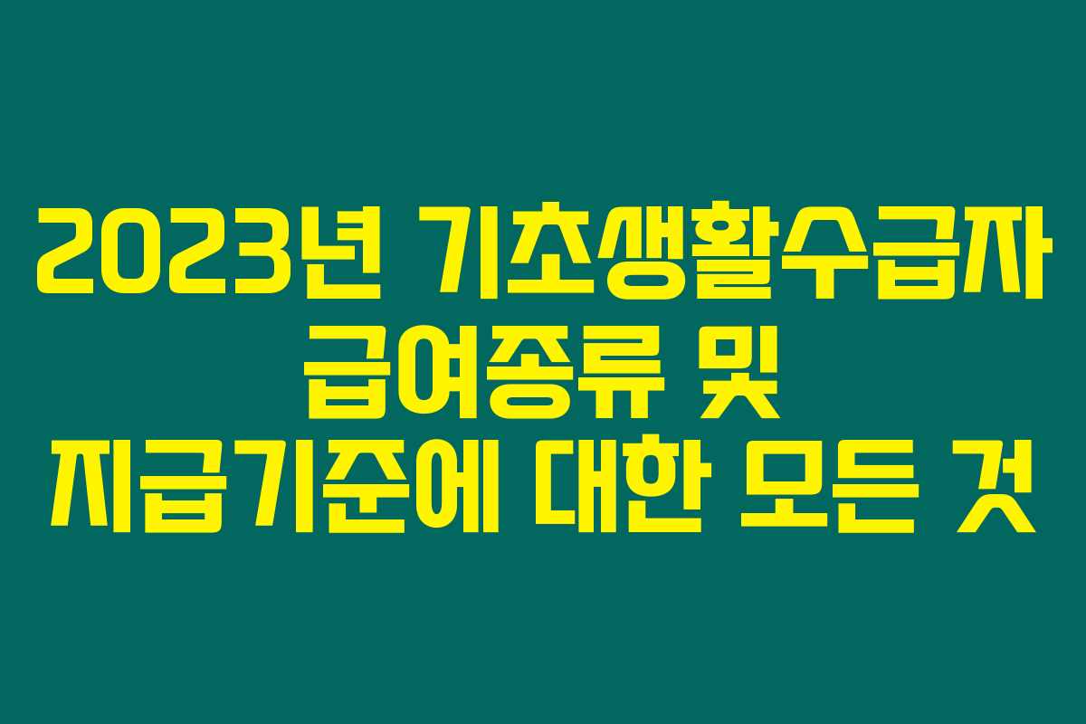2023년 기초생활수급자 급여종류 및 지급기준에 대한 모든 것