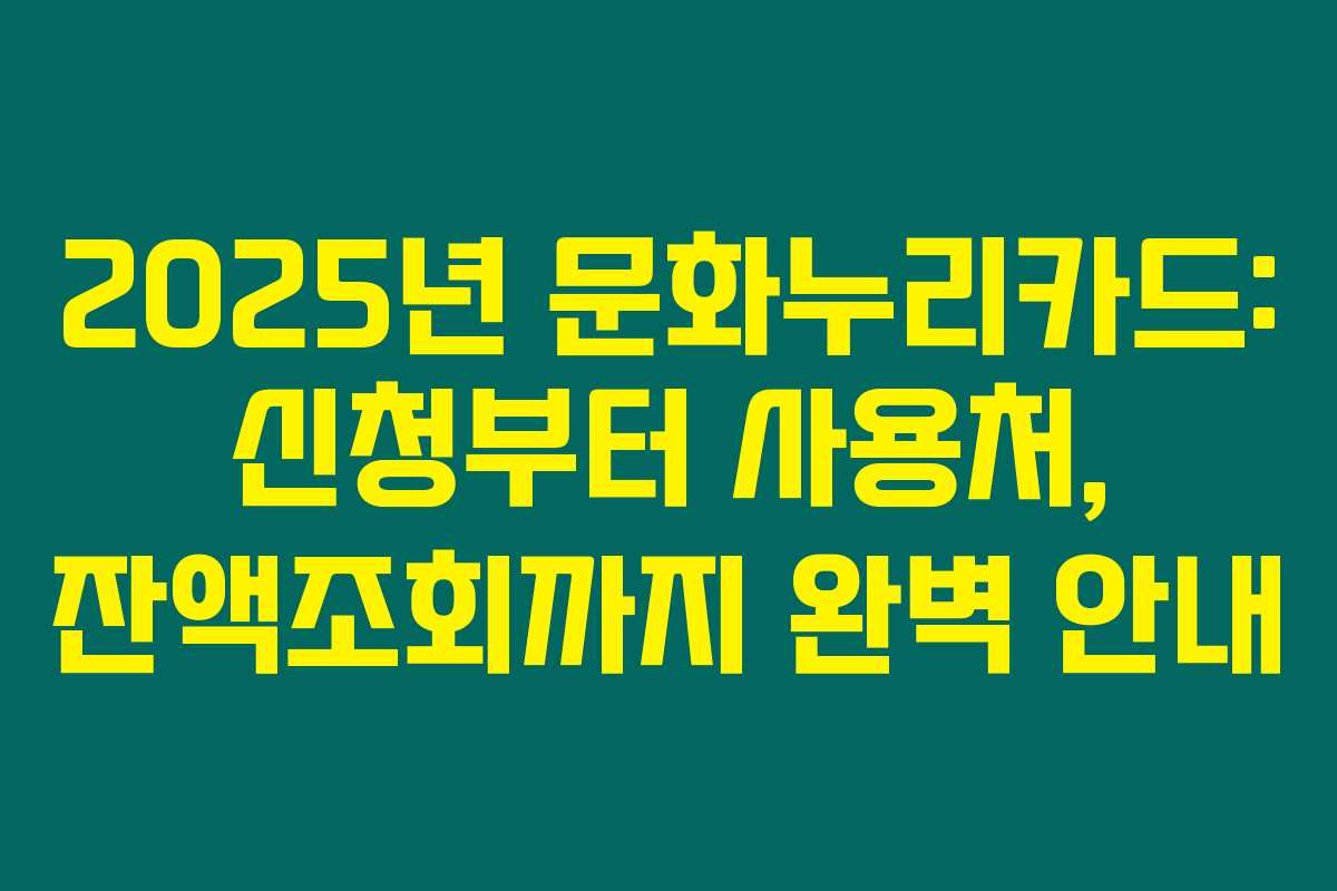 결론적으로, 2025년 문화누리카드는 여러분의 문화 생활을 더욱 풍요롭게 만들어줄 중요한 카드랍니다. 신청 방법과 사용처, 잔액 조회까지 잘 숙지하셔서 누리세요! 더 많은 정보가 필요하시면 언제든지 찾아주세요.
