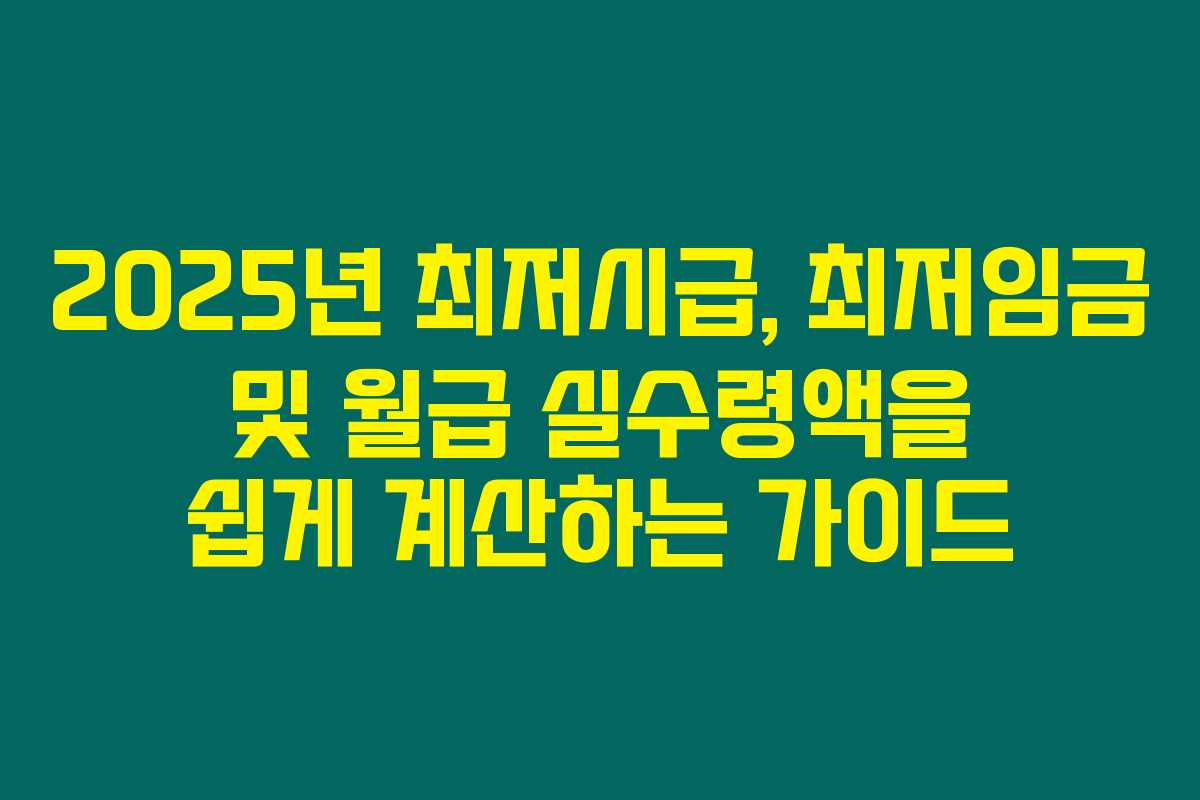 2025년 최저시급, 최저임금 및 월급 실수령액을 쉽게 계산하는 가이드