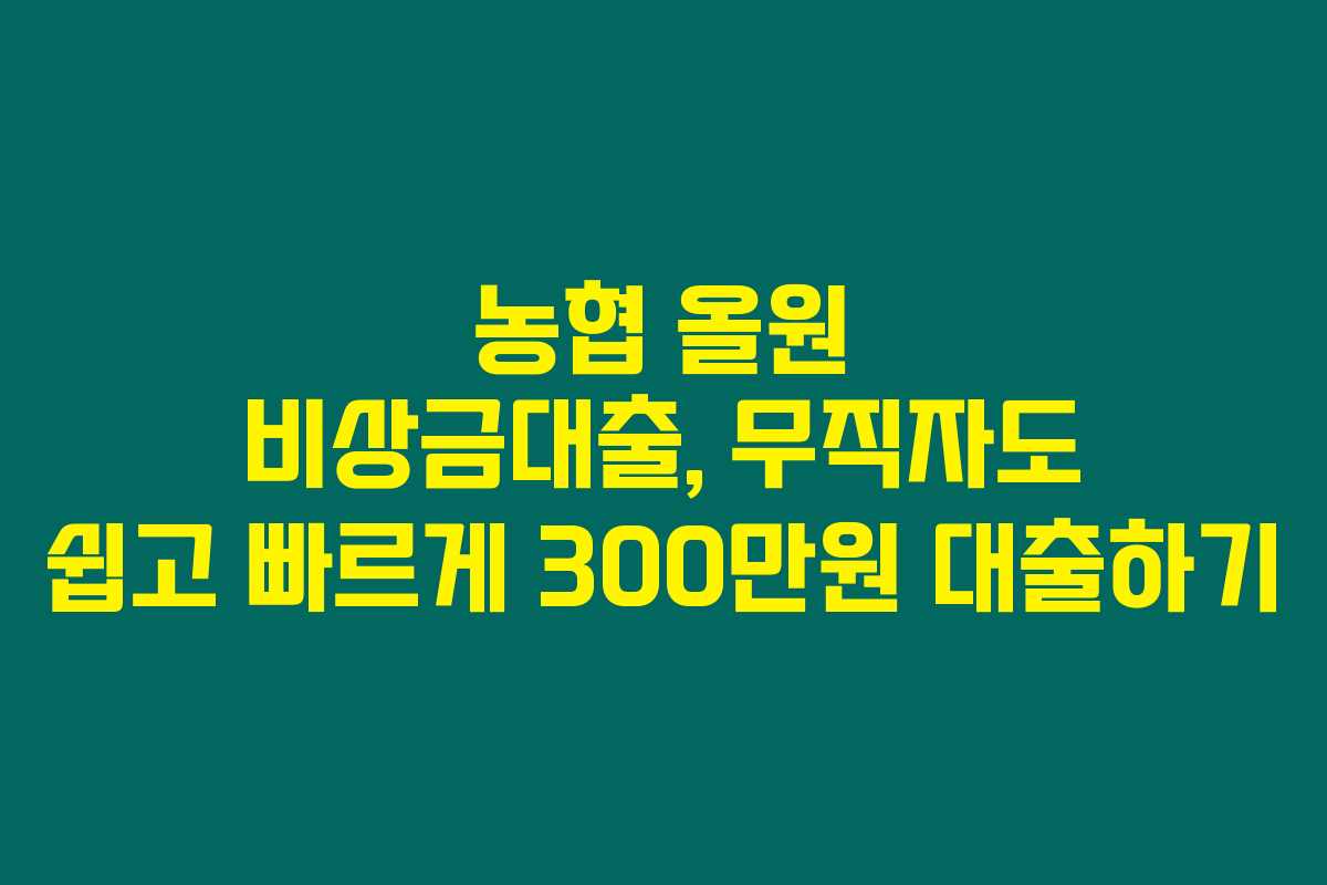마무리하면, 농협 올원 비상금대출은 무직자에게 빠르고 간편한 대출 옵션이라서 매우 유용하답니다. 대출 조건, 신청 방법, 후기를 참고하여 잘 활용해보세요. 어떤 일이든 급하게 필요한 자금이 생길 경우, 적절한 대비책을 마련하는 것이 중요하니까요.