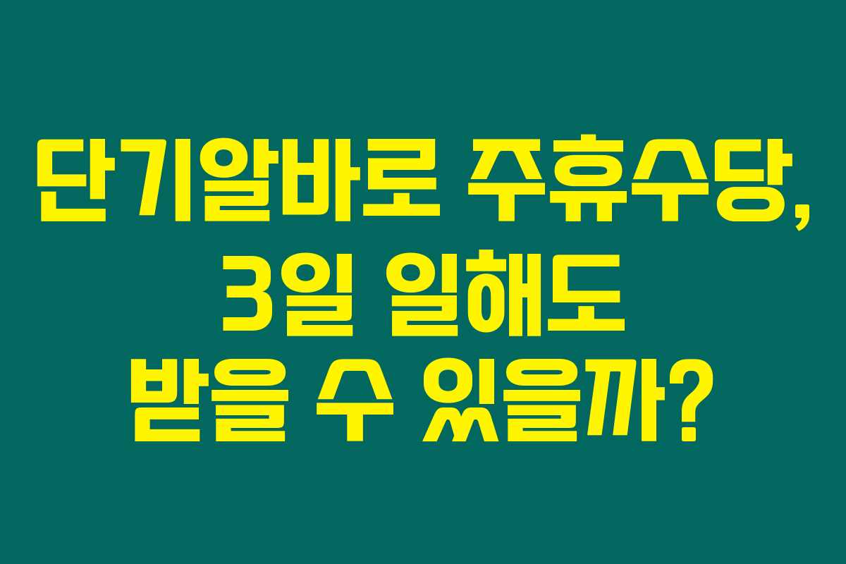 방학 때 아르바이트를 생각하는 분들이 많죠? 짧게는 며칠 동안 일하고자 하는 단기알바를 찾는 사람들이 늘어나는데요. 그런 분들이 가장 많이 궁금해하는 것 중 하나가 ‘단기알바 주휴수당’이에요. 3일만 일해도 주휴수당을 받을 수 있는지 궁금하시죠? 아래를 읽어보시면 정확한 정보와 계산법을 확인할 수 있어요.