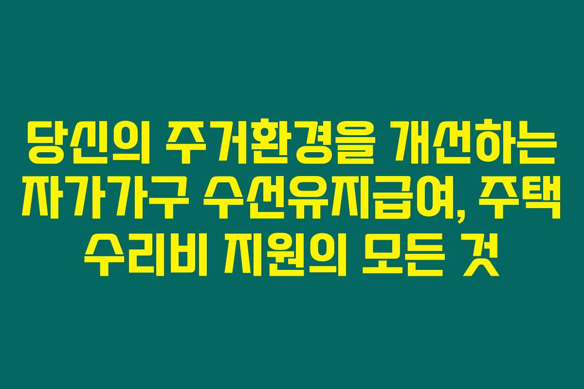 제가 직접 경험해본 결과, 자가가구 수선유지급여는 주거 여건을 개선하고 소득이 낮은 가구에 부담을 덜어주는 매우 중요한 제도라고 말씀드릴 수 있어요. 이 글에서는 자가가구 수선유지급여 지원의 모든 것을 소개해 드릴게요.