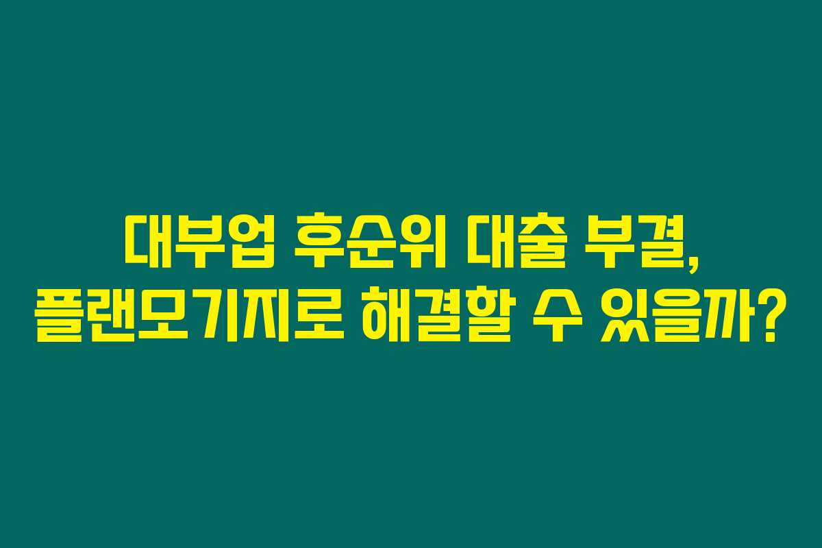 대부업 후순위 대출이 부결되었더라도, 소득 증명과 신용 점수가 괜찮다면 플랜모기지를 통해 대출이 가능할 수 있습니다.