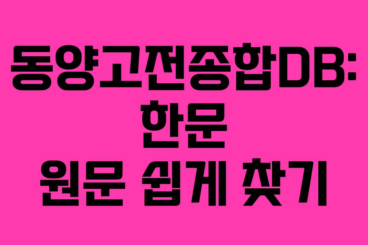 동양고전종합DB는 다양한 동양 고전 문헌을 한 곳에서 검색할 수 있는 데이터베이스입니다. 사용자는 원하는 고전 문헌의 원문을 찾아보고, 관련 해석 및 주석도 쉽게 확인할 수 있습니다. 이곳의 URL은 여기입니다.