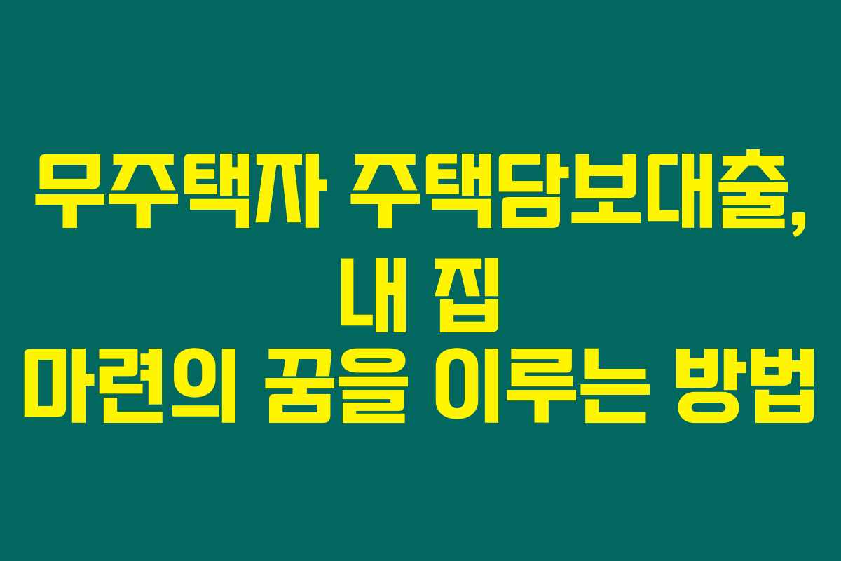 무주택자 주택담보대출, 내 집 마련의 꿈을 이루는 방법