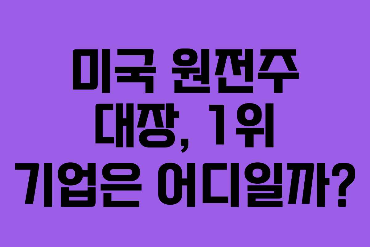 미국 원전주 대장 기업으로는 두산에너빌리티가 꼽히고 있습니다. 이 회사는 원자력 발전에 대한 긍정적인 기대감으로 거래량이 급증하고 있습니다.