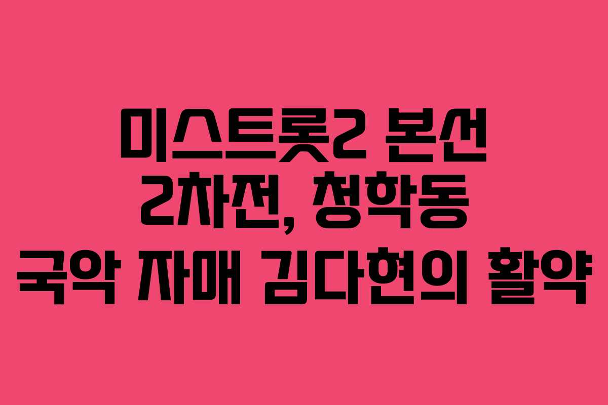 미스트롯2의 본선 2차전에서 청학동 국악 자매의 막내 김다현이 영광의 진으로 선정되었습니다. 그녀는 12살의 나이에 최연소 트롯왕관을 차지하며 많은 이들의 관심을 받고 있습니다.