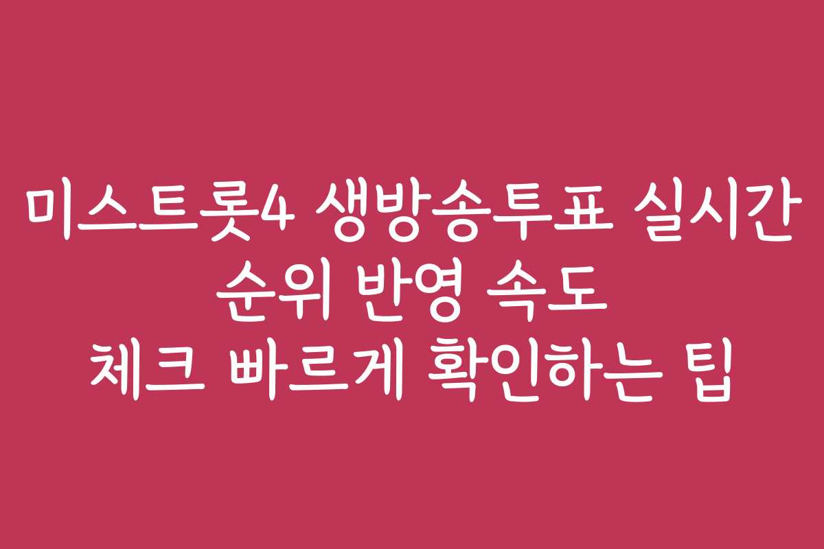 핵심 키워드: 미스트롯4, 생방송투표, 실시간 순위, 반영 속도, 투표 방법, 확인 팁, 팬들, 경험 공유, 소통, 투표 시스템, 실시간 피드백