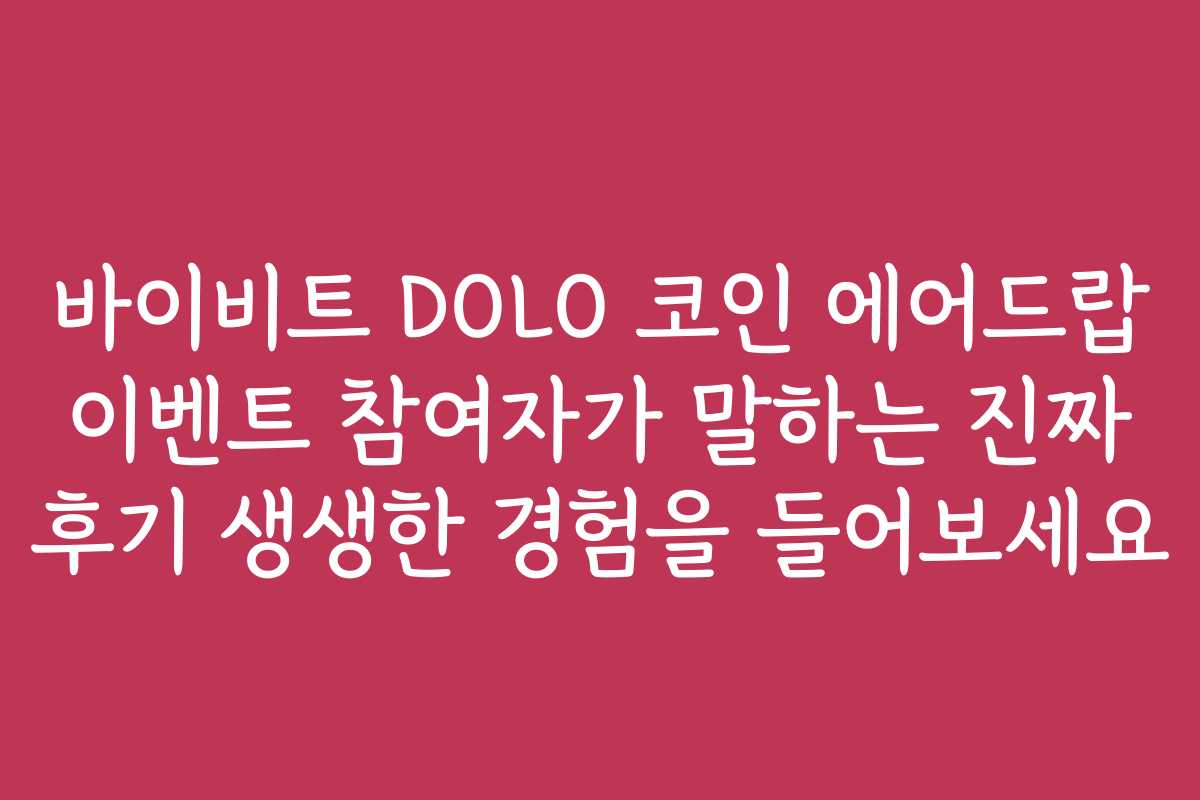 바이비트 DOLO 코인 에어드랍 이벤트 참여자가 말하는 진짜 후기 생생한 경험을 들어보세요
