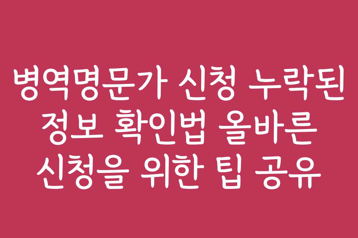 병역명문가 신청 누락된 정보 확인법 올바른 신청을 위한 팁 공유