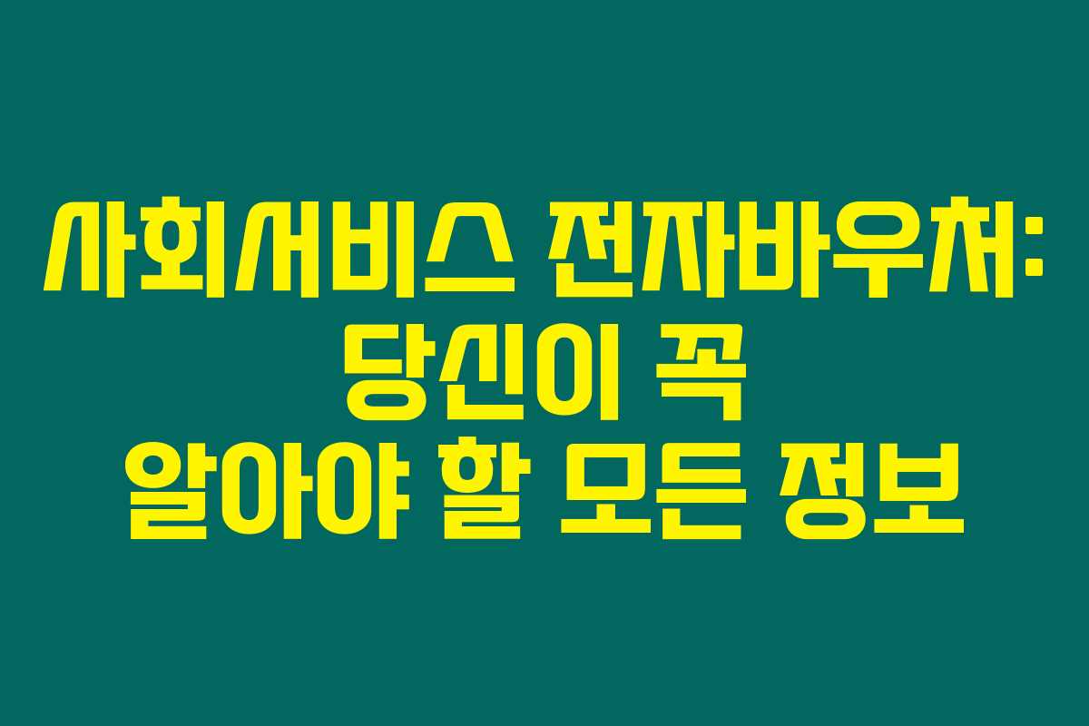 제가 직접 경험해본 결과로는 사회서비스 전자바우처는 우리 사회에서 필요한 서비스에 대한 접근성을 높이는 매우 유용한 시스템입니다. 이번 글에서는 전자바우처의 구조와 특징, 신청 방법, 자격 조건 등에 대해 다루어 보겠습니다. 아래를 읽어보시면 사회서비스 전자바우처에 대한 깊이 있는 이해를 돕는 데 큰 도움이 될 것입니다.