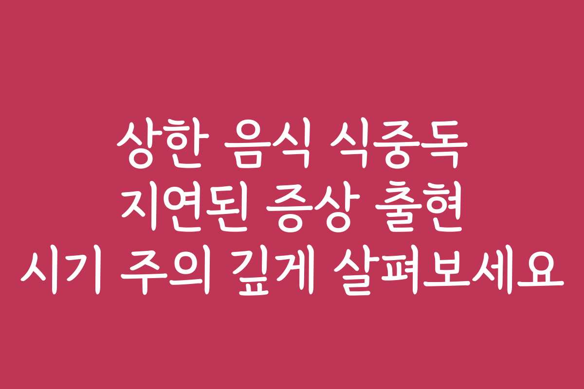 상한 음식을 섭취하면 식중독의 위험이 가중됩니다. 하지만 의외로 증상은 즉각적으로 나타나지 않기도 하죠. 이번 포스트에서는 상한 음식으로 인한 식중독의 지연된 증상 출현 시기를 주의 깊게 살펴보도록 하겠습니다.