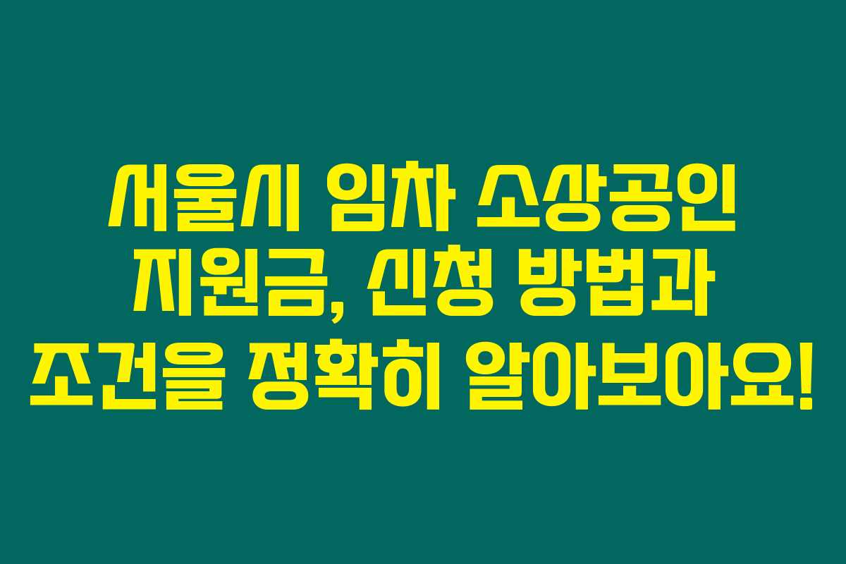 서울시 임차 소상공인으로 지원받기 위해서는 몇 가지 조건을 충족해야 합니다. 우선, 서울시에 소재한 임차 소상공인이어야 하며, 사업장 임대차 계약기간이 1년 이상 남아 있어야 해요. 또한, 전년도 사업 실적이 3000만 원 이하여야 하며, 신청 시점에서 정상적으로 영업 중이어야 합니다.
