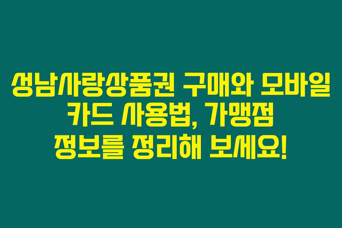 제가 직접 알아본 바로는, 성남사랑상품권은 지역 경제를 활성화하며 시민들에게 실질적인 혜택을 제공하는 아주 유용한 도구입니다. 성남시 내의 다양한 가맹점에서 사용할 수 있는 이 상품권은 모바일로도 손쉽게 결제 가능하답니다. 아래를 읽어보시면 성남사랑상품권의 구매, 사용 방법 및 가맹점 정보를 모두 확인할 수 있습니다.