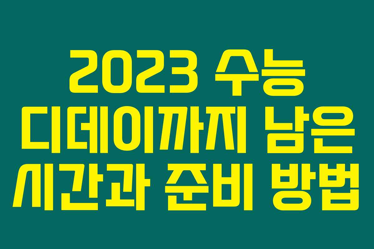 수능 디데이를 맞이하는 수험생 여러분, 기다리던 수능이 얼마 남지 않았습니다. 수능을 준비하는 중이라면, 남은 시간을 어떻게 활용해야 할지 고민이 많을 텐데요. 2023 수능 디데이는 11월 17일 목요일입니다. 그렇다면 이 날까지 어떤 준비를 해야 할지 아래를 읽어보시면 많은 도움이 될 거에요.
