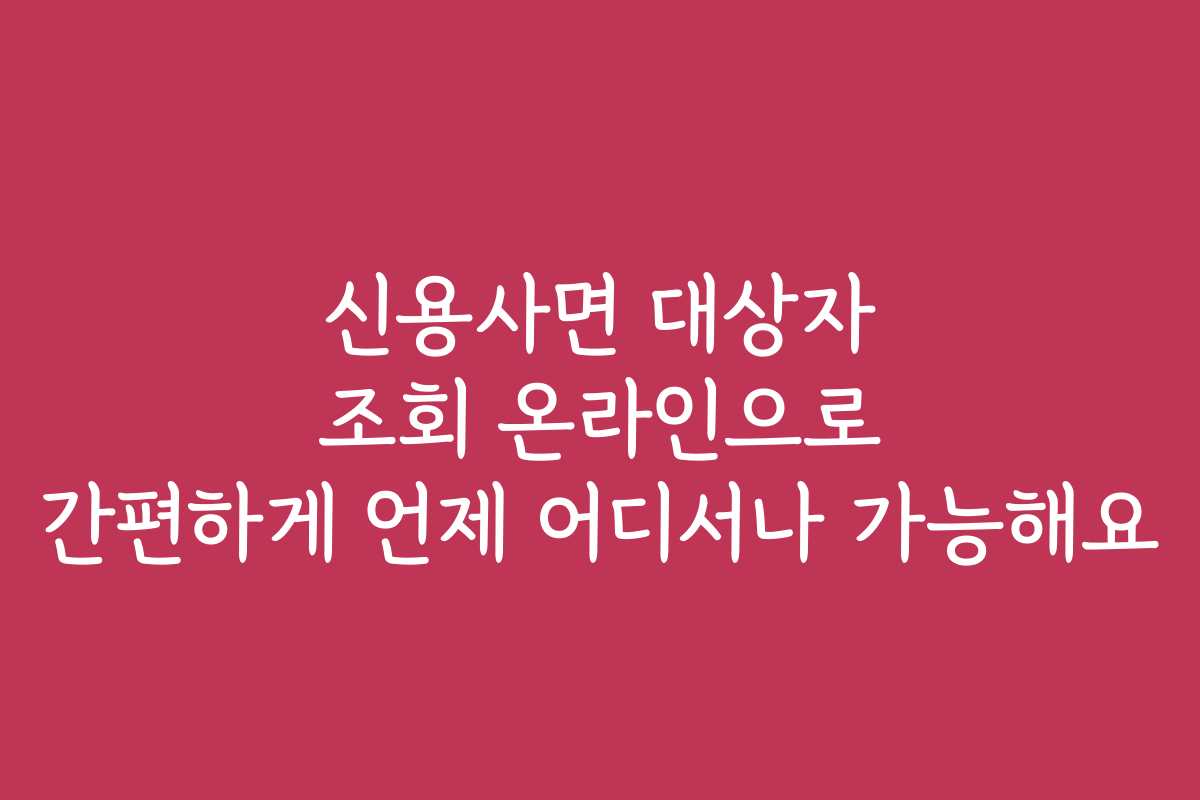 이제 신용사면 대상자 조회는 온라인으로 간편하게, 언제 어디서나 가능합니다. 적절한 정보와 방법을 통해 신용을 효과적으로 관리해 나가세요!