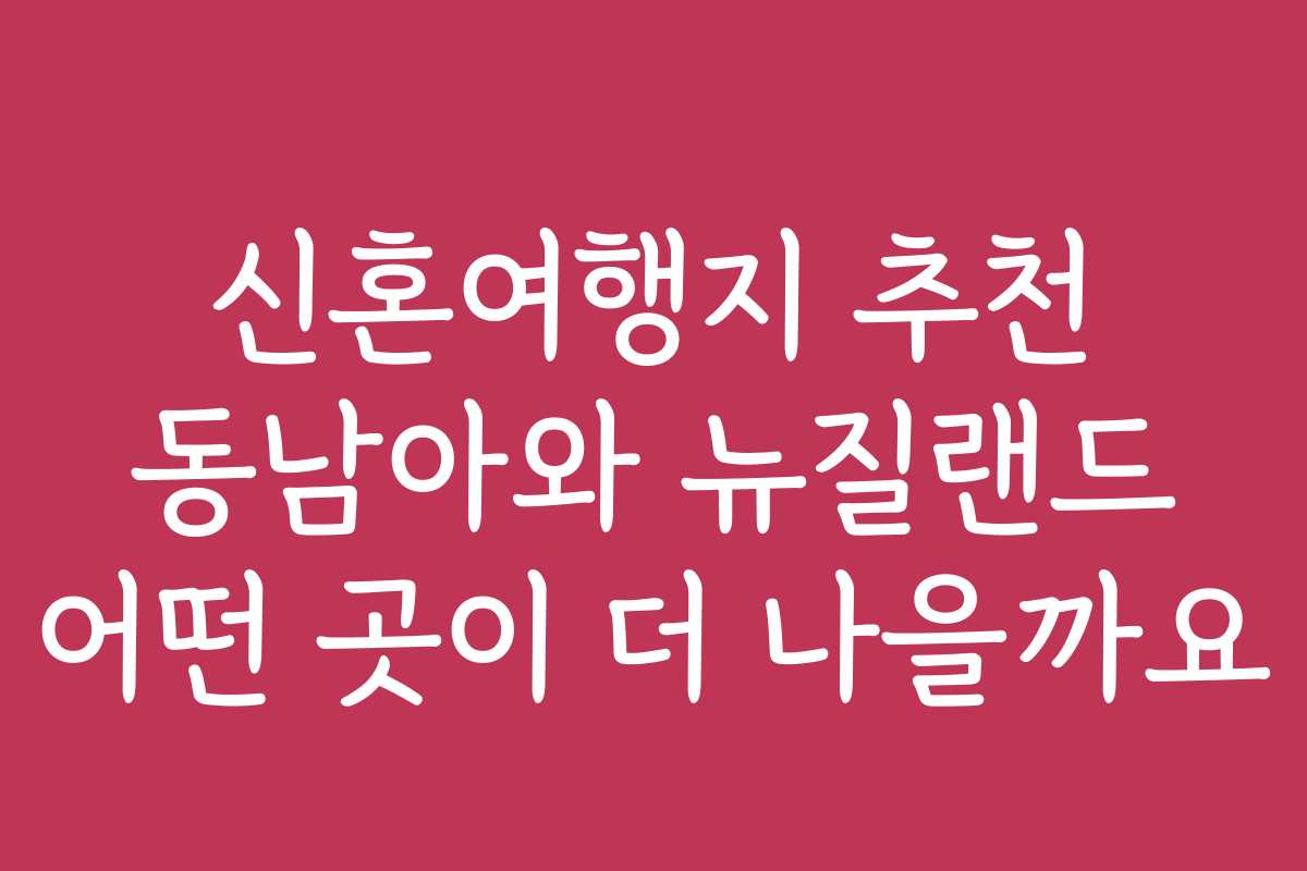 태그: 신혼여행, 동남아 여행, 뉴질랜드 여행, 여행지 추천, 신혼여행 비용, 신혼여행 준비, 여행 팁, 신혼부부, 여행 추천, 동남아 관광지, 뉴질랜드 관광지