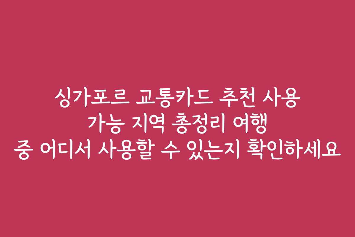 싱가포르 교통카드 추천 사용 가능 지역 총정리 여행 중 어디서 사용할 수 있는지 확인하세요