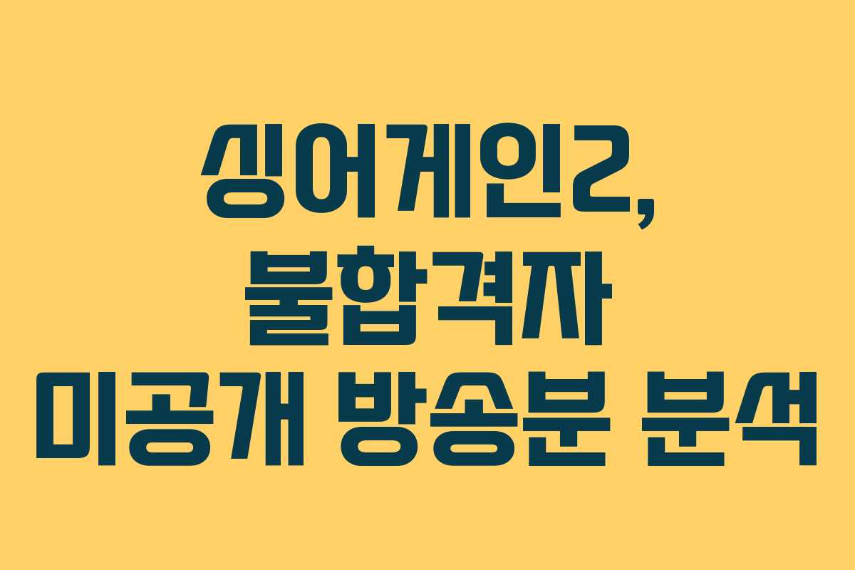 싱어게인2는 다양한 가수들이 실력을 겨루는 프로그램으로, 방송에서 공개되지 않은 미공개 방송분에 대한 관심이 높습니다. 이번 글에서는 불합격자들의 미공개 방송분을 중심으로 그들의 경연과 점수 결과를 살펴보도록 하겠습니다.