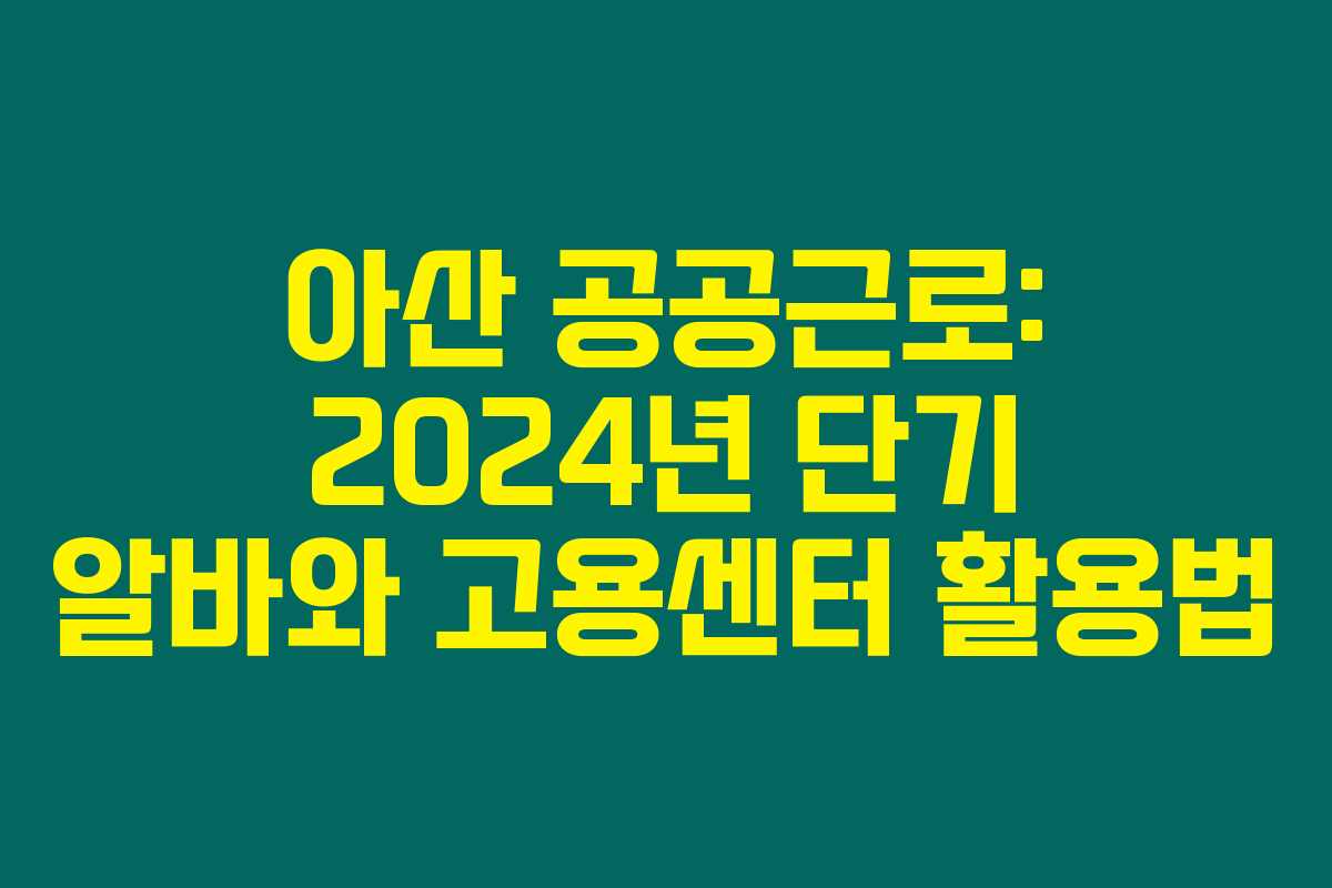 아산 공공근로: 2024년 단기 알바와 고용센터 활용법