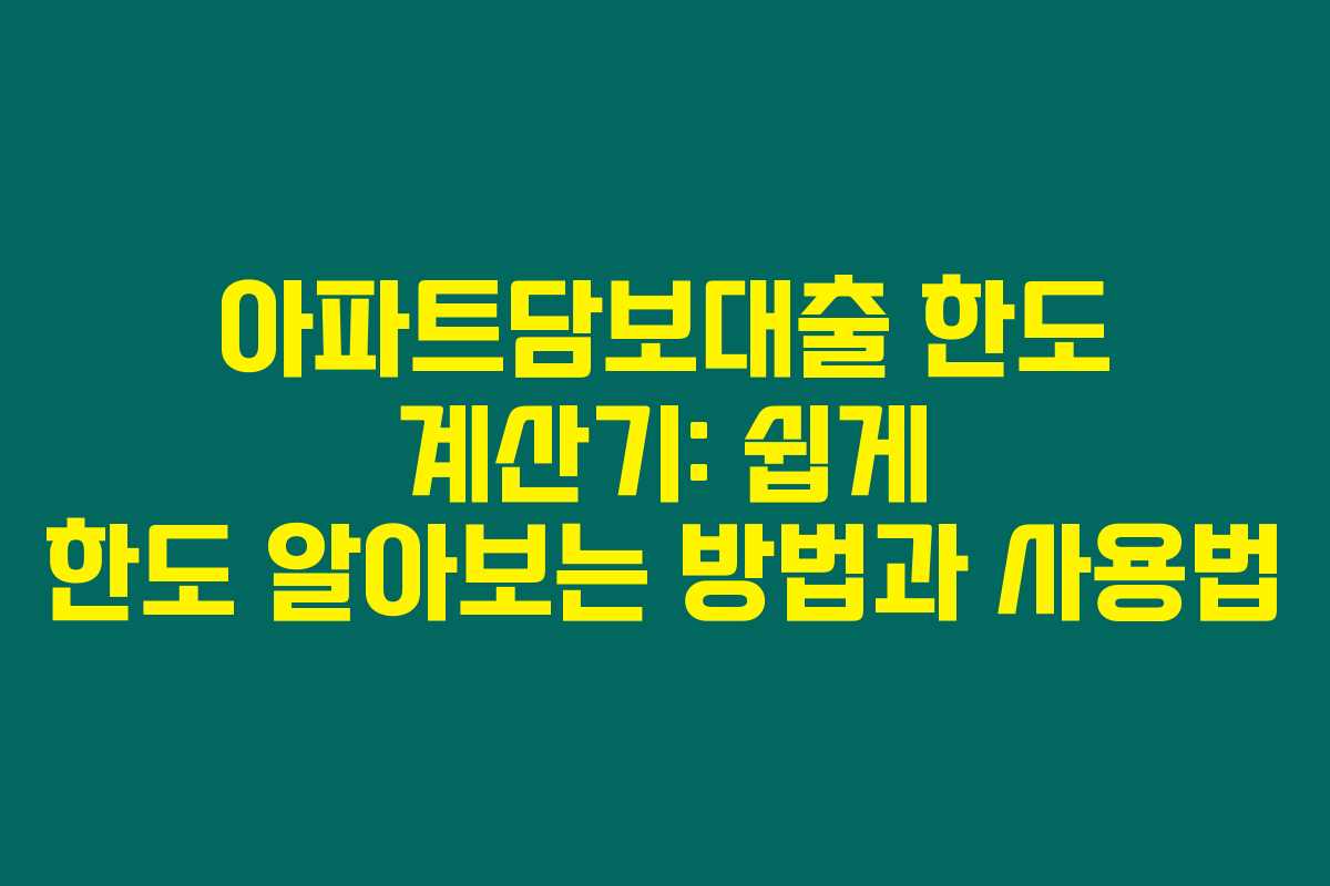 아파트담보대출 한도 계산기: 쉽게 한도 알아보는 방법과 사용법
