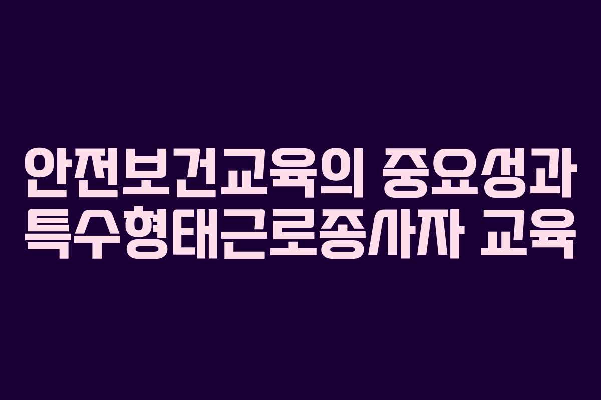 안전보건교육은 근로자가 위험을 인지하고 예방할 수 있도록 돕습니다. 이는 산업재해를 줄이고, 근로자의 건강을 증진하는 중요한 역할을 합니다. 특히 특수형태근로종사자는 일반 근로자와는 다른 특성을 가지고 있어 맞춤형 교육이 필요합니다.
