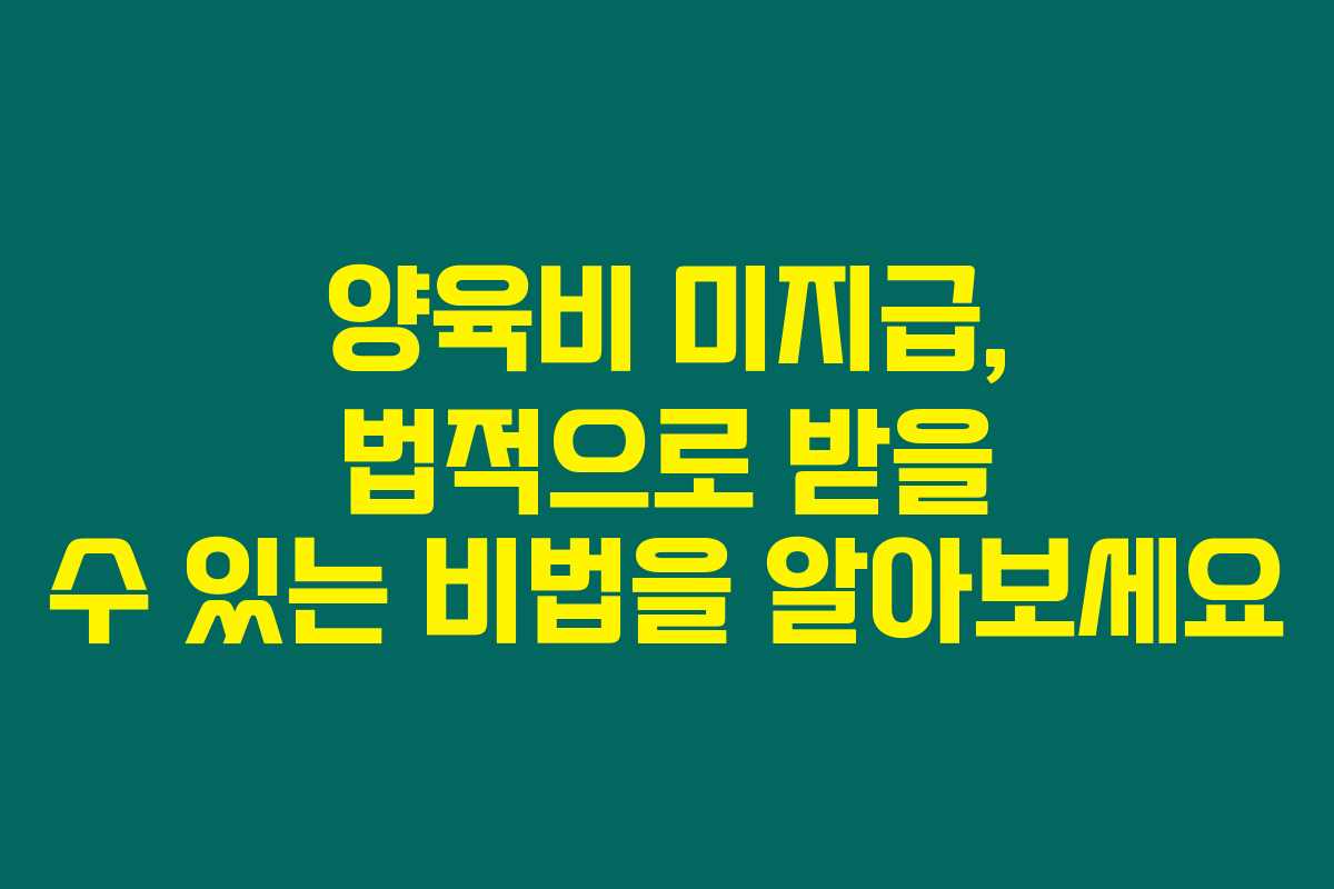 양육비 미지급 문제는 반드시 법적 조치를 통해 해결해야 합니다. 자녀의 복리를 위해서라도, 양육비를 반드시 수급해야 하며, 법적 제재를 통해 비양육자는 경제적 책임을 다해야 합니다.