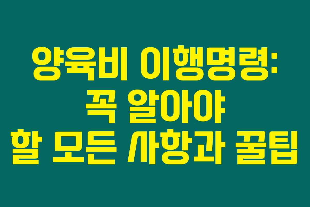 제가 직접 분석해본 결과, 양육비 이행명령은 이혼 후 양육비를 지급받기 위한 법적 조치로 매우 중요한 절차입니다. 양육비를 받지 못하는 부모님들의 고민이 깊어지는 가운데, 이행명령을 통해 강력한 방법으로 미지급 양육비를 회수할 수 있는 방법과 관련된 정보를 모아보았습니다. 아래를 읽어보시면, 양육비 이행명령의 전반적인 내용과 함께 유용한 팁을 알게 되실 거예요.