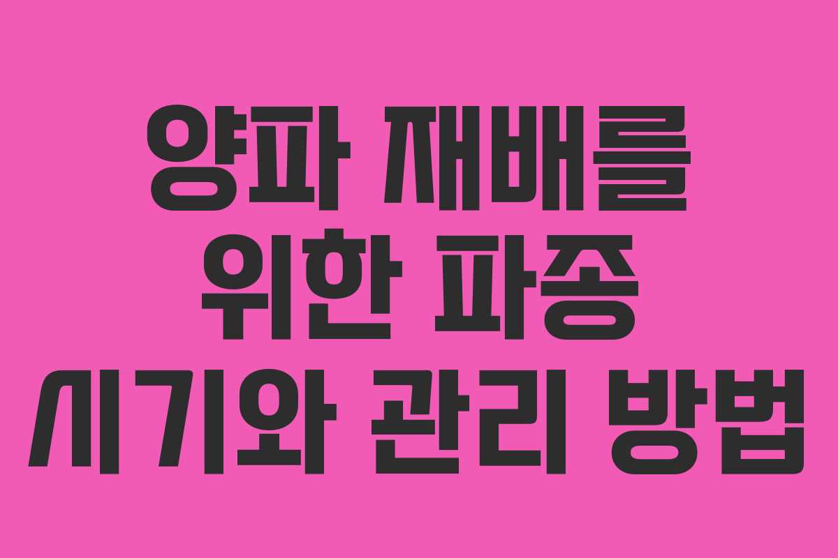 양파 재배 팁
