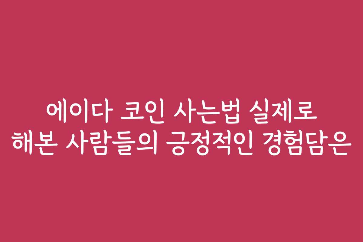 키워드 태그: 에이다 코인, 암호화폐, 거래소, 투자, 안전한 보관, 긍정적 경험, 구매방법, 초보자 팁, 수익성, 코인 구매, 후기
