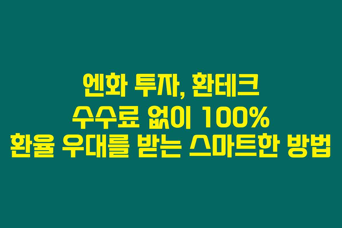 엔화 투자를 고민하고 있다면 이 글에서 정말 필요한 정보를 확인해 보세요! 환전 수수료 없이 100% 환율 우대를 받는 방법은 궁금증을 자아낼 텐데요, 초보 투자자들조차 쉽게 활용할 수 있는 팁과 실전 후기까지 제공할게요! 아래를 읽어보시면 엔화 투자로 효율적인 수익을 올리는 데 큰 도움이 될 것입니다.