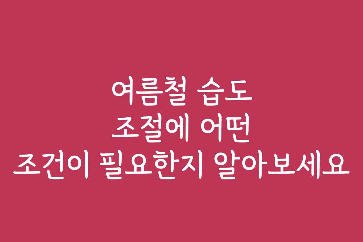 여름철 습도 조절, 어떤 조건이 필요한지 알아보세요