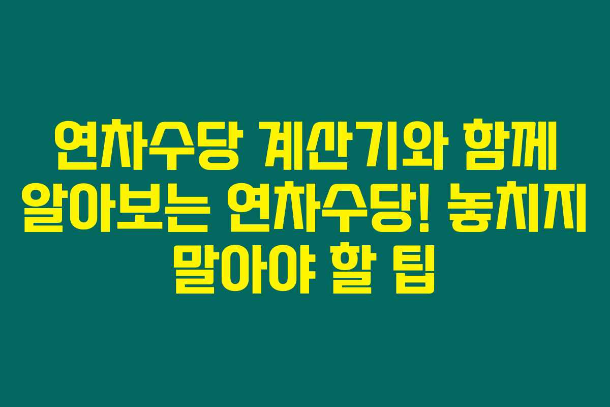 제가 직접 리서치해본 바로는, 연차수당은 직원들에게 법적으로 보장된 유급휴가의 보상을 받는 중요한 요소랍니다. 하지만 많은 분들이 계산 방법이나 권리에 대해 잘 모르시는 경우가 많더라고요. 그래서 오늘은 연차수당 계산기와 함께 연차수당의 뜻과 계산 방법, 법적 의무, 그리고 주의사항까지 자세히 알아보려고 해요. 아래를 읽어보시면 연차수당에 대한 모든 정보가 정리될 거예요.