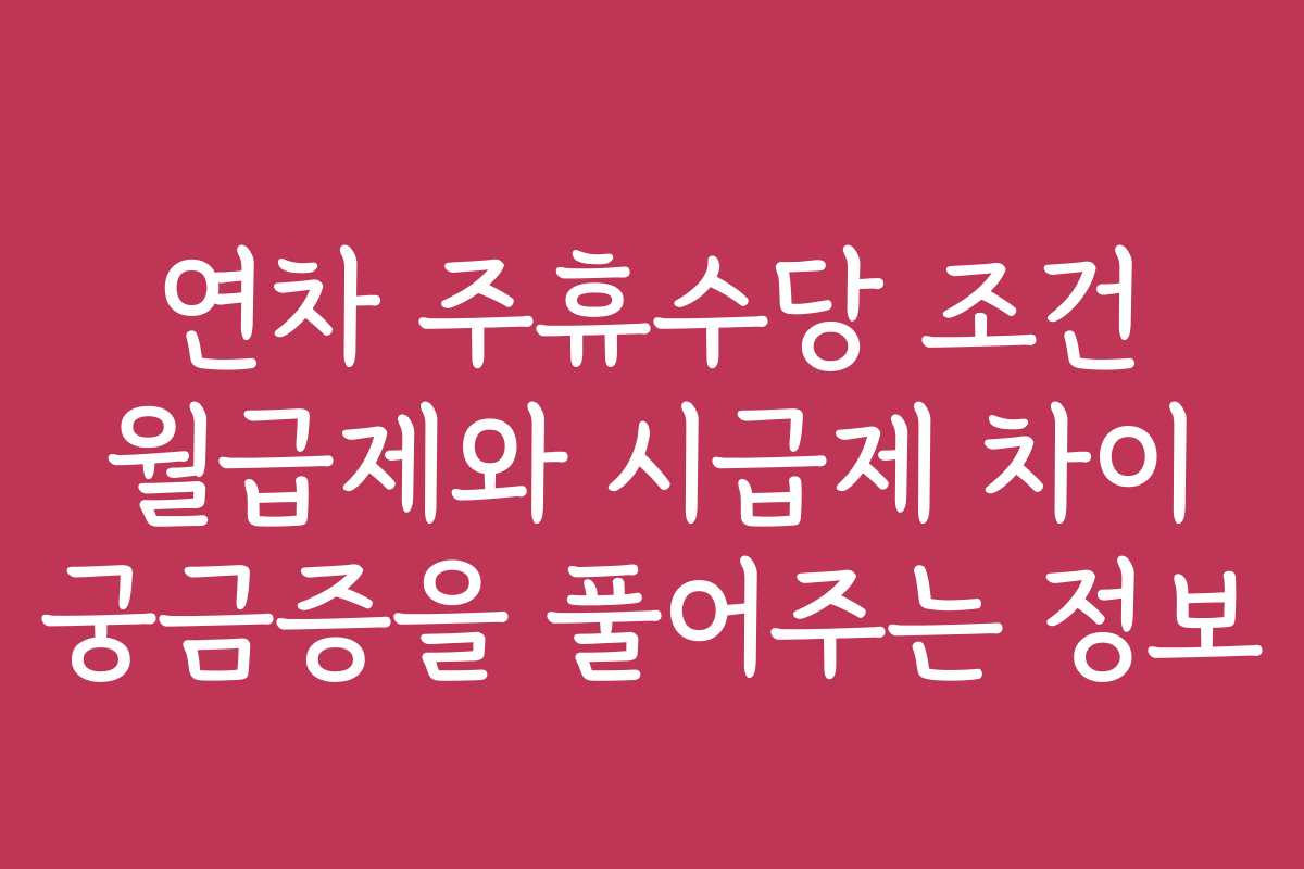 연차 주휴수당 조건 월급제와 시급제 차이 궁금증을 풀어주는 정보