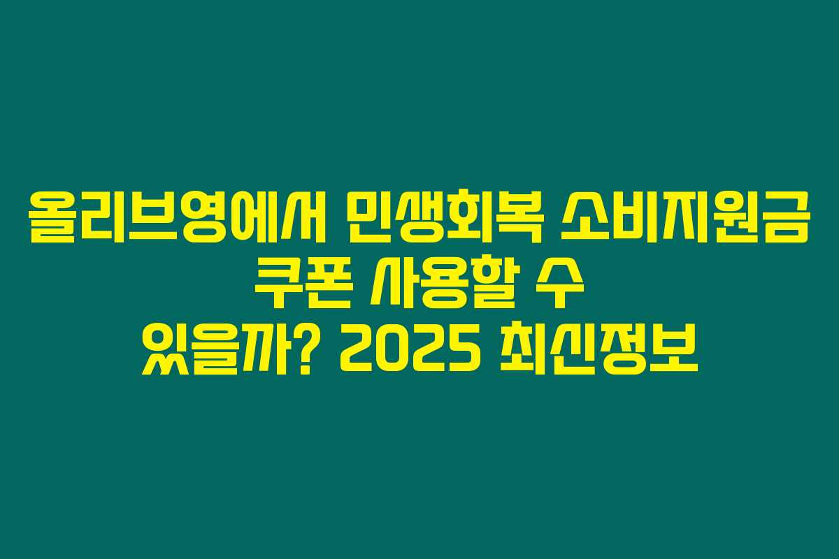 민생회복 소비지원금 쿠폰을 받을 때 가장 많이 궁금해하는 질문 중 하나는 “올리브영에서 사용할 수 있을까?”에요. 물품 선택의 폭이 넓고 많은 분들이 선호하는 올리브영이기 때문에, 쿠폰 사용 가능 여부에 따라 혜택이 달라질 수 있거든요. 아래를 읽어보시면 올리브영에서의 소비지원금 쿠폰 사용 가능 여부와 확인 방법에 대한 상세 정보를 정리해 드릴게요.
